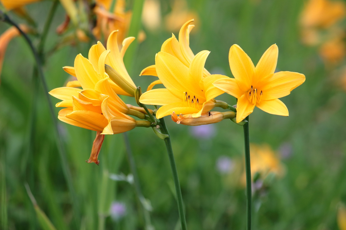 ニッコウキスゲは、直径7cmほどのラッパ状の花が印象的なゆり科の植物です。日光市ではシンボルとしても親しまれており、6~7月頃になると霧降高原を中心に、草原や湿原などで山吹色の美しい姿が観察できます。