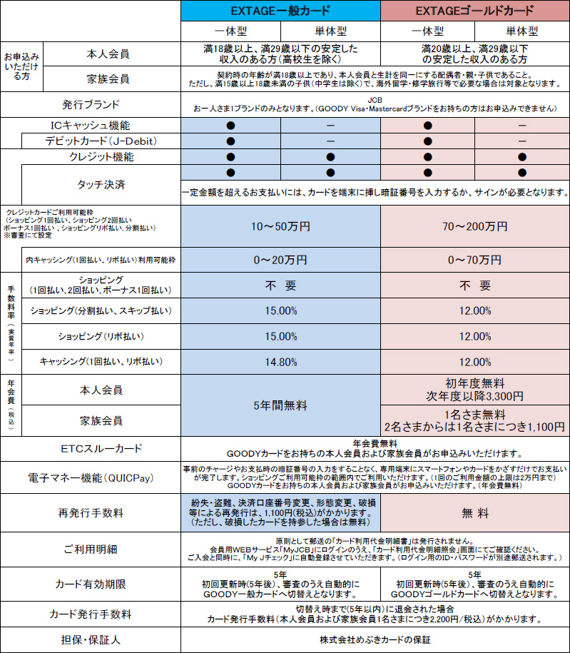 GOODY EXTAGEカード商品概要
